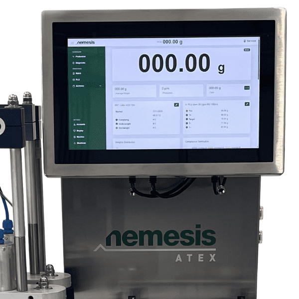 icona intuitivitàLa selezionatrice ponderale Atex integra l’HMI Lumina con touchscreen da 15,6” e visualizzazione verticale dei dati, per una lettura immediata di produzione e statistiche. Il pannello comandi è racchiuso in un telaio in acciaio inox rinforzato, progettato per operare in ambienti industriali gravosi.
